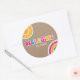 Peace Groovy Hot Pink Brown Baby Shower Hippie Classic Round Sticker