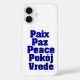 Do you like peace theme phone cases? You'll love this phone case that says peace in such languages like French, Spanish, English, Polish and Dutch in a pattern of blue and black hearts.