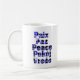 Do you like mugs with inspirational sayings? This mug says peace in English, Spanish, French, Dutch and Polish with blue hearts.