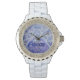 The word for "Peace", is painted in shades lavender with purple, blue, and gold accents. A dove floats above the word peace and there are multiple hearts on the angel. The acrylic painting has a textural contrast and sparkle from a light layer of glitter. Make customised guardian angel watch designs with your personal messages and/or photos. Use the "customise it" button. The guardian angel art makes great personalised custom wrist watch gifts!