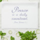 Quote from Pope Francis I, reads, "Peace is a daily commitment". Shows in dusty blue script.