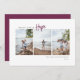 Peace, Joy & Hope, modern minimalist typography design, 3 vertical centred photos, flat card. Features, modern purple script "Hope" and coordinating solid colour backing. Template text lines for your name and year.