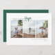 Peace, Joy & Hope, modern minimalist typography design, 3 vertical centred photos, flat card. Features, modern green script "Hope" and coordinating solid colour backing. Template text lines for your name and year.