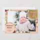 Peace & Joy, Pink, Gold Poinsettia Photo Holiday Card