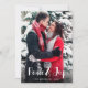 This flat Christmas greeting card offers a full photo frame to cover the entire front of the card. Trendy hand lettered style overlay text reads: Peace and Joy. Custom text allows you to add your name.
