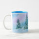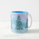 Customise message of Peace Joy. Beautiful Watercolor of Winter Trees on a Snowy Night Two-Tone Coffee Mug