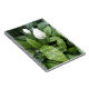 A personal sized, spiral bound notebook that features a floral photo image of an elegant, white Peace Lily Plant and leafy, green foliage along with a philosophical wisdom quote by the historian, Aristotle, and printed in white, stylised text. A lovely, floral design!