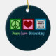 A cute accountant Christmas gift featuring a peace sign, heart, and calculator. Peace Love Accounting present for a CPA.
