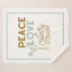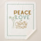 Sherpa blanket for country music lovers features "Peace Love & Country Music" text with a daisy bouquet on gingham background