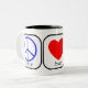Peace, Love, and Doughnuts Two-Tone Coffee Mug