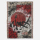 The large symbol over the sun and in some of the background is 'Ai' meaning love. Also in the background is 'Hei' which may mean calmness, quiet, peacefulness, etc in Kanji and is one of several words implying peace. The Hanko style stamp towards the left is 'Kibou' symbolising a hope, a wish or a dream.