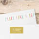 Custom designed wrap-around style return address labels coordinate perfectly with our matching Peace Love and Joy holiday photo cards. Add your return address for a stylish custom touch on your holiday cards this year!
