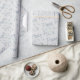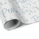 Peace Love & Joy Christmas Wrapping paper with typographic design with casual handwritten lettering and watercolor letters decorated with winter greenery in shades of blue and green. Simple and elegant with matching gift tags available in my store.
