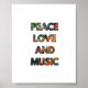Peace Love And Music Quote Poster. The design was created using melted wax crayons
