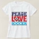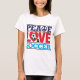 Tell everyone what's important, especially soccer. The words "Peace, Love and Soccer" are spelled out on this shirt. A soccer ball appears in the heart to represent the "O" in "Love" while a peace sign takes the place of the "C" in "Peace". Available with matching products.