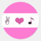 Peace, love, and tunes classic round sticker