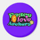 You will love this cute and funny peace, love, archery bow arrow hunter design. Great gift for a girly girl that loves vintage, retro designs! Available on a variety of cool, groovy products that are perfect for gifts! I heart the 70s!