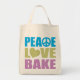 Peace Love Bake...What else do you need in life? Perfect gift for any baking addict. It doesn't matter if you're a professional baker working in a bakery, an at-home chef always creating new dessert recipes, a budding cake decorator, or someone who just loves to make Christmas cookies...you're addicted to baking! Great gift idea for any baker. Funny gift for any baking diva. Design features a peace sign and a heart. See our shop for more fun and unique Peace Love...shirts and gifts.