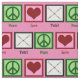 A cute baton twirler gift with a peace sign and a heart next to two batons that reads PEACE LOVE TWIRL on a pretty pink background.