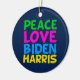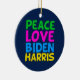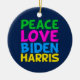 Cute Joe Biden Kamala Harris 2020 Christmas ornament for a progressive democrat who loves fun, colourful political designs. Peace Love Biden Harris.