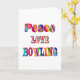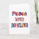Share your love for bowling with this shiny blue design saying Peace Love Bowling. Great gift for a bowler.