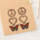 Add some joy to your life with these fun Peace-Love-Butterflies stickers. Featuring beautiful, realistic, multicolor butterflies forming a peace sign and heart, followed by a single life-like butterfly. These unique colorful graphic stickers will lift your spirits every time you see them! This 2pc sticker set will look great on your water bottle, mirror, laptop and more! Multiple sizes available. Please note, if selecting a transparent sticker, it looks best when applied on a lighter colored base item.