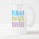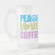 Peace Love Coffee Frosted Glass Beer Mug