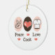 Peace symbol, heart and chef's hat toque in pink and dark brown on cooking t shirts, apparel, stationery and more merchandise that make a cute gift for a gourmet chef, cook or cooking class or culinary school student.