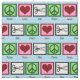 A beautiful hairstylist fabric with a cute peace sign, heart, and pair of hair cutting scissors. A cool gift for an arts and crafts friend who does lots of projects or for a hair stylist in a salon. Pretty blue Peace Love Cut fabric.