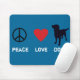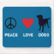 This customisable Peace Love Dogs product design with a peace sign, heart and dog silhouette makes a unique gift for dog owners and lovers.