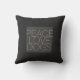 This peace love dogs quote pillow modern style is in shades of warm sepia and charcoal grey with text for home decor and accessories.
