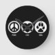 Great quality clock and very well made. Just what I was looking for to finish my hall off. Looked in loads of other websites and eventually found exactly what I was looking for at Zazzle. Designe and colour is perfect. I just love it. Bought the medium size and fits well for where I was placing it.