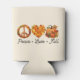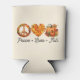 Embrace the beauty of fall with this "Peace, Love, Fall" can cooler, featuring a charming autumn leaves wreath, a pumpkin heart, and festive pumpkins. This cosy and seasonal design is perfect for fall lovers, pumpkin spice fans, and autumn enthusiasts. Great to add a warm and rustic touch to your fall collection.