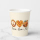 Embrace the beauty of fall with this "Peace, Love, Fall" paper cup, featuring a charming autumn leaves wreath, a pumpkin heart, and festive pumpkins. This cosy and seasonal design is perfect for fall lovers, pumpkin spice fans, and autumn enthusiasts. Great to add a warm and rustic touch to your fall collection.