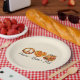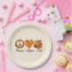 Embrace the beauty of fall with this "Peace, Love, Fall" paper plate, featuring a charming autumn leaves wreath, a pumpkin heart, and festive pumpkins. This cosy and seasonal design is perfect for fall lovers, pumpkin spice fans, and autumn enthusiasts. Great to add a warm and rustic touch to your fall collection.