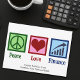 Peace Love Finance holiday cards. A cool custom financial advisor or planner card for a banker or money management who works with bank clients to manage their assets and finances. Cute customisable Christmas design for financial planning bankers in public, corporate, or personal finance.