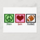 A pretty peace sign, heart, and a football postcard for a coach to pass out to his team players.