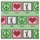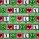 Green fabric with peace signs, hearts, and golfers. Great gift to make golfing items.