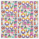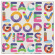 A pattern of unique colourful decorative text Peace Love Good Vibes. Beautiful piece of fabric for anyone. If needed, use the "Customise It" option to position the image on a product or to change the colour of the background. Enjoy, buy one, have fun, and be happy. #peace #love #GoodVibes #colour #text #typography #fabric #craft