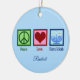 Peace Love Hanukkah ornament for a Jewish person who likes to celebrate Chanukah or Christmakkuh. A pretty peace sign, heart, and a beautiful menorah on a pretty blue monogram gift.