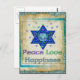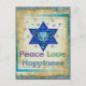 Hearts, Star of David, and the words "Peace Love Happiness" are a lovely way to say Happy Hanukkah.