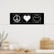 Peace Love Happiness. This design is a great retro gift for a hippie or activist who wants to spread a positive message to the world. Perfect for anyone who’s involved in activism. Promote peace, love and happiness with this humourous accessory! Includes universal symbols of a peace sign, a heart and a happy face.