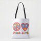 Peace & Love Hippie vibe tote bag with black handle.