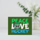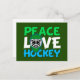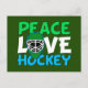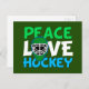 Peace Love Hockey Green Christmas Holiday Postcard