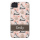 Show your love for ice skating and figure skating with this pretty in pink and brown peace symbol, heart and skates iPhone 4 / 4s Barely There Case-Mate cover and case for her. Personalise it with your name on the PRINTED ribbon look design. This makes a pretty gift for a figure skater or skating coach. Artwork © Chrissy H. Studios, LLC. All Rights Reserved.