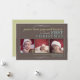 Holiday message reads 'peace love joy and kisses, it's <baby's> first christmas' in this very sweet design that's customised with your baby's name and features three photos. In sage green and teal on a trendy mocha brown background, it's playful, fun and definitely unique. Also available in a pink colour scheme for girls: