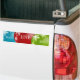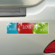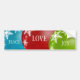 Customisable Holidays bumper sticker with blue, red and green Christmas balls with snowflakes and slogan - peace, love, joy.