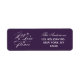 PEACE, LOVE, JOY CHRISTMAS HOLIDAY ADDRESS LABEL. PURPLE BACKGROUND COLOR. ELEGANT, SCRIPT FONT, WHITE TEXT WITH THE WORDS "JOY, LOVE, PEACE" CUTE AND STYLIZED SNOWFLAKES. ELKE CLARKE DESIGNS©