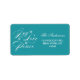 PEACE, LOVE, JOY CHRISTMAS HOLIDAY ADDRESS LABEL. TURQUOISE. BACKGROUND COLOR. ELEGANT, SCRIPT FONT, WHITE TEXT WITH THE WORDS "JOY, LOVE, PEACE" CUTE AND STYLIZED SNOWFLAKES. ELKE CLARKE DESIGNS©