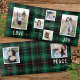 This beautiful tri-fold design features a dark green tartan plaid background and bold typography. The greeting on the front cover says simply "peace on earth" and continues inside with "love" and "joy". As you open the first panel you see a single square photo with your main holiday text. As you fully open the card you see one photo on the left, one photo on the right, and in the middle are three smaller square photos each with personalised text. The back of the card is blank but you could easily add another photo or more text. This design is a perfect choice for a warm, heartfelt message of Christmas joy. The multi-photo layout allows you to upload a total of SEVEN of your favourite family photos in various sizes.